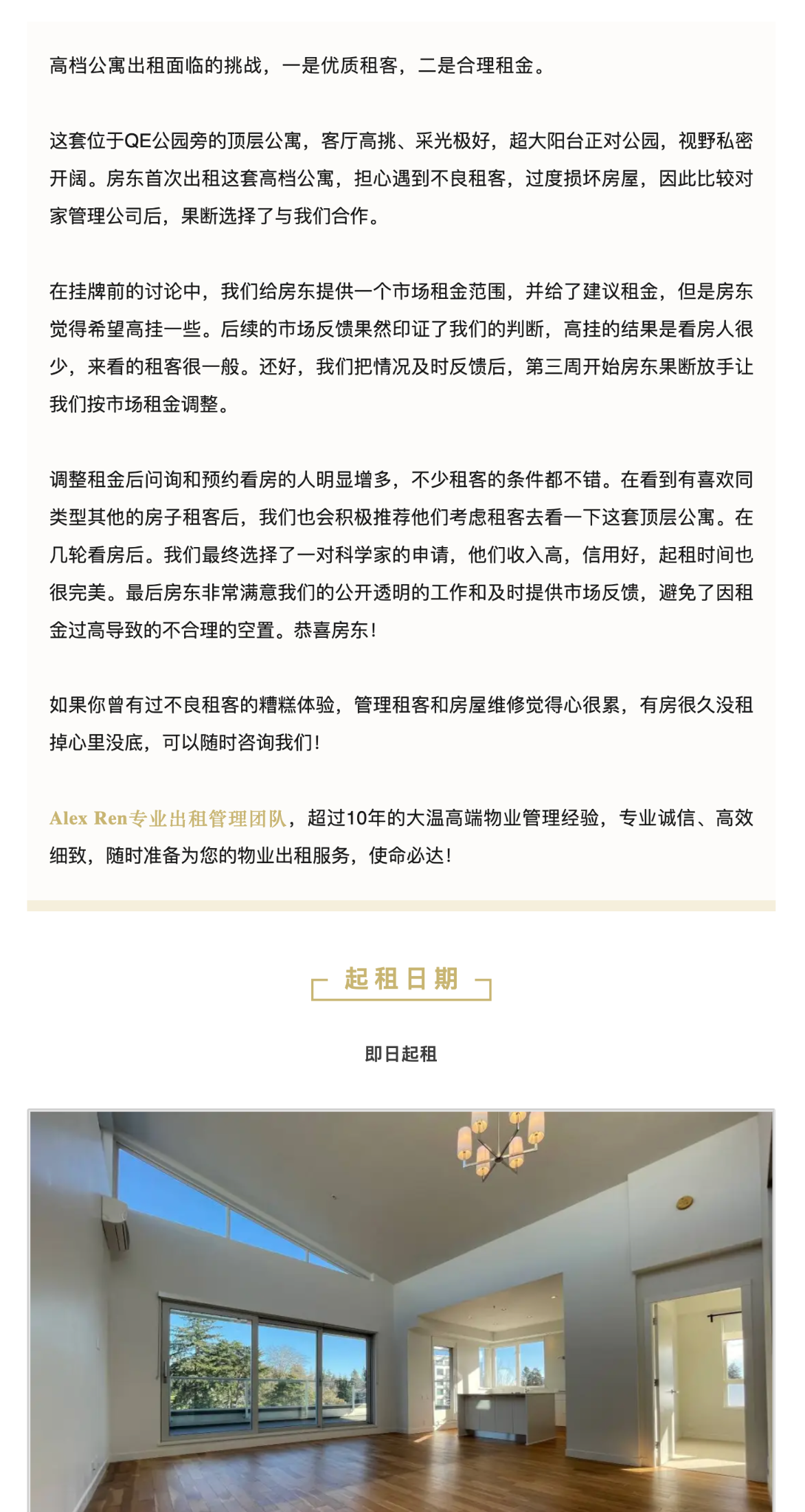 RSS 出租案例 | QE公园旁的顶层公寓,最后租给了谁? Posted on July 10, 2024 by Alex Ren Property Management Posted in Rented Comments: No comments Post Your Comment: Your Name: Your Email: Your email will not be published Comment: Notify me when other comments are posted Submit Sending...